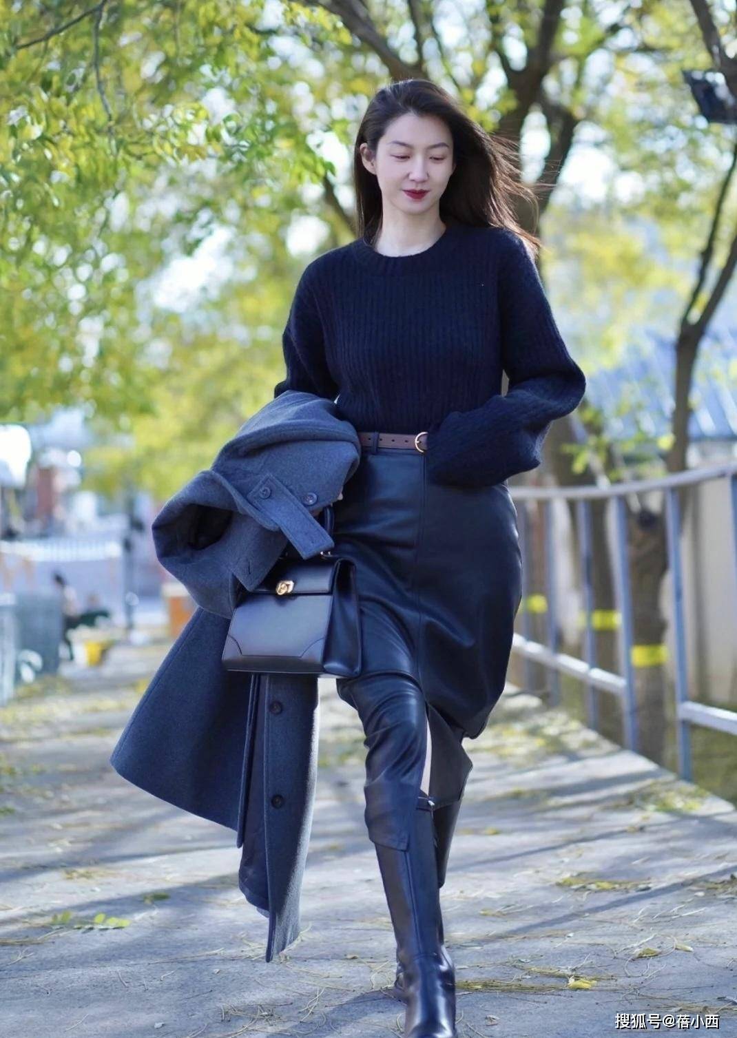 冬季时,裙装与靴子搭配也是一种经典的穿搭方式。比如一条时髦的半身裙搭配长筒靴,不仅能增添气场,还能展现出浓浓的时尚感。黑色打底裤和短靴的搭配也是不错的选择,这种黑色配色的呼应效果能延伸腿部线条,同时避免整体造型过于单调,彰显出简约的优雅。