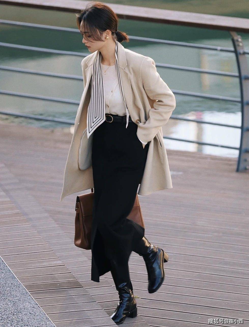冬季穿裙子搭配靴子时,记得露出一点脚踝部分。适当露肤能减少厚重感,让整体造型更轻盈。比如一条开叉设计的中长半身裙与短靴的搭配,既显高又不失时尚感,矮个子的女性也可以大胆尝试。