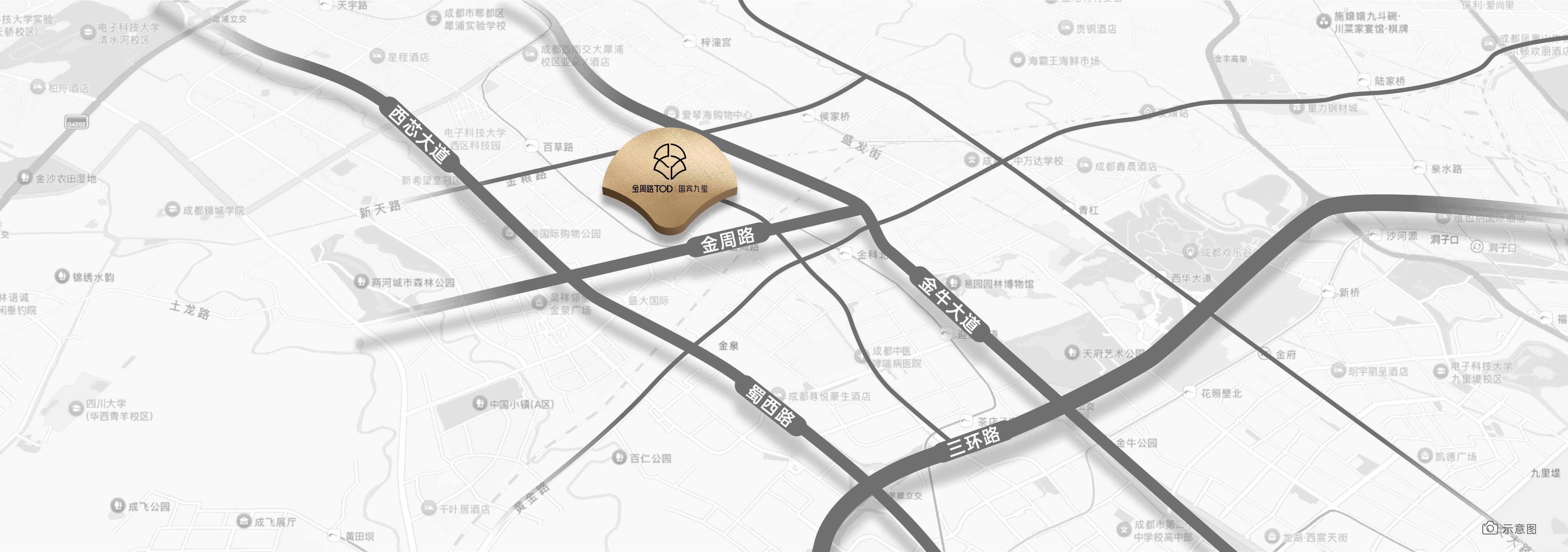 金周路TOD·国宾九玺项目择址国宾热土,汲取国际都会质感与成都生活哲学,旨在打造一座高品质、优展示、强产品的TOD城市战略级新作。
