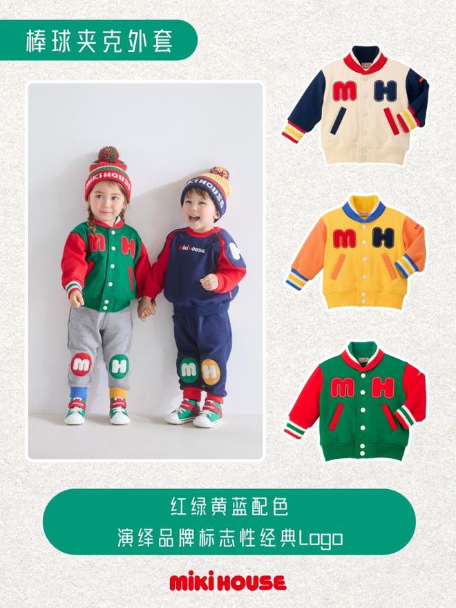 经典LOGO系列还推出棒球夹克外套,同样用明艳的红绿黄蓝演绎品牌标志性配色,视觉冲击强,个性十足,喜欢潮酷穿搭的宝宝不可错过这件时尚单品哦。