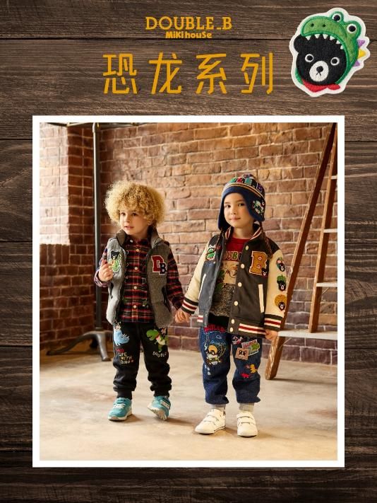 本季引人注目的系列还有DOUBLE_B恐龙主题系列,以“I Can’t Choose~集合吧!我的最爱们~”为灵感,将侏罗纪世界的震撼与童真幽默通过设计融合。从羽绒外套到针织帽,从卫裤到衬衫,每一件都布满精致恐龙刺绣与徽章贴饰,穿在身上仿佛带领孩子们走进一场惊险又欢乐的侏罗纪大冒险。