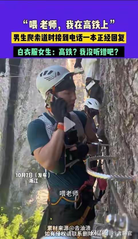 男生爬索道时接老师电话一本正经回复高铁上女生表情笑翻全网