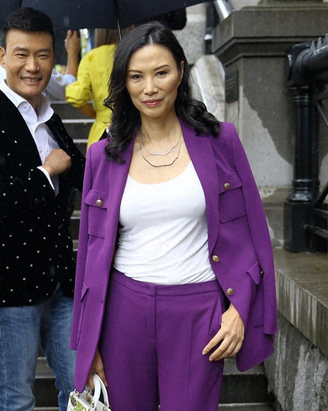 邓文迪又把野心穿在身上!紫色西装+烟管裤像超模又美出国际范