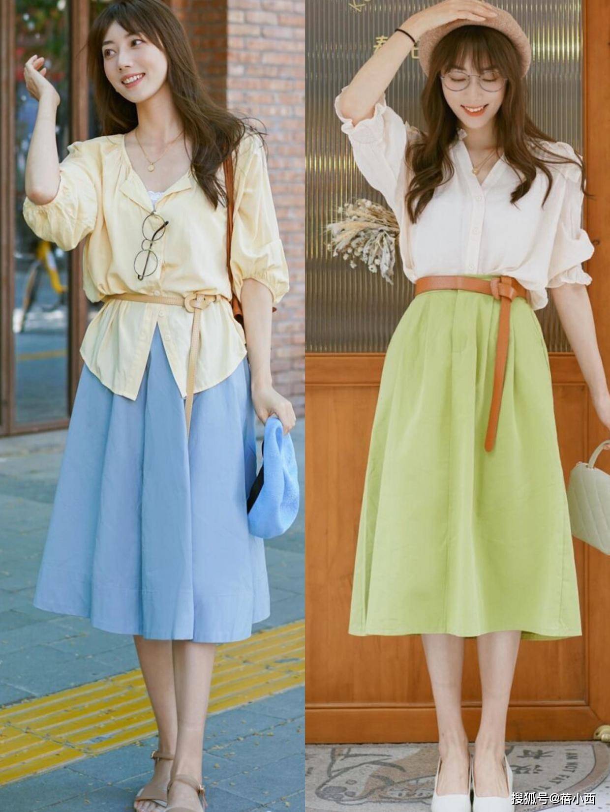 穿搭时,腰线的表现至关重要。对于个子较矮的女性,选择高腰设计的半身裙是提升身高比例的好方法。要避免穿长款上衣遮住腰部,否则容易让整体比例显得不协调,想要展现大长腿,就得记得露出腰线. 亮色半身裙