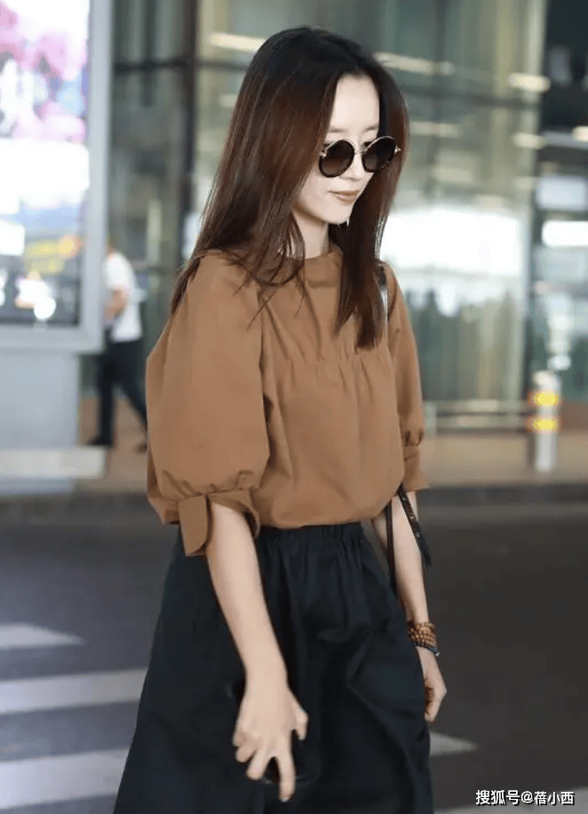董洁向来以纤细的身材著称,体重约八十斤,整个人就像一块标准的衣架子。这次她以标志性的美拉德穿搭风格引领时尚潮流,选择棕色衬衫、黑色半身裙以及乐福鞋的组合,呈现出成熟中带着青春气息的时尚感。下面就让我们一同欣赏她的搭配要点。