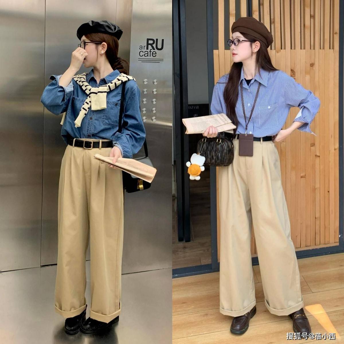 阔腿裤是春日里舒适与时髦的理想选择,宽松的裤型能够巧妙修饰腿部线条,特别适合四十岁女性的身材。高腰设计更是显高又显瘦,拉长腰线、提升整体比例,让人看起来更显修长。将上身搭配一件简约的短款衬衫,塞进裤腰后能凸显腰线,展现出利落而有张力的轮廓。若追求清爽的配色,可以尝试蓝色衬衫与卡其色阔腿裤的组合,冷暖对比能提亮肤色,让整体更显明亮白皙。