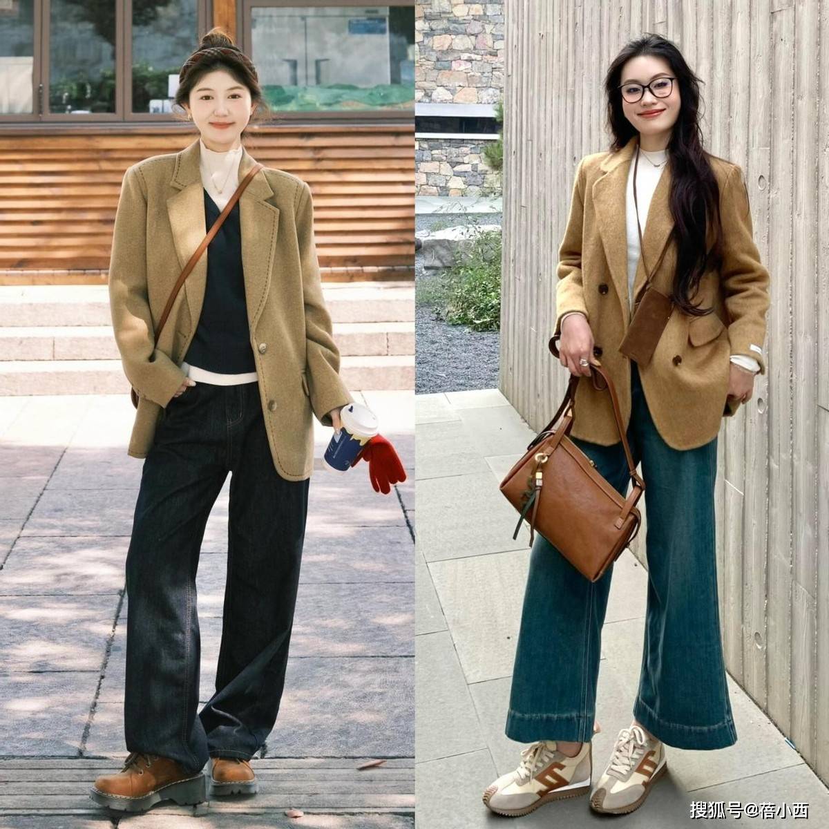 卡其色西装在职场与日常之间都易于驾驭。相较于黑色西装的严肃,卡其色更柔和,亲和力与柔美并存,时尚且百搭。选取廓形适中的款式更能勾勒出四十岁女性成熟自信的身材线条,单排扣或两粒扣都能呈现干练气质。穿法多样,既可在商务场合穿着,也适合与朋友的午后茶聚。当内搭外套的同时,搭配牛仔阔腿裤,整身立刻呈现出随性惬意的风格,既显得得体又不失舒适感。