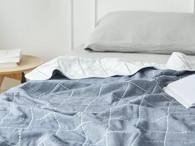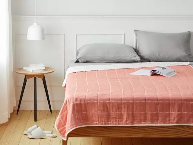 这几年,纱布做的床品越来越流行,也是因为它透气性好,再怕热的人也能盖得住,非常适合夏天用。