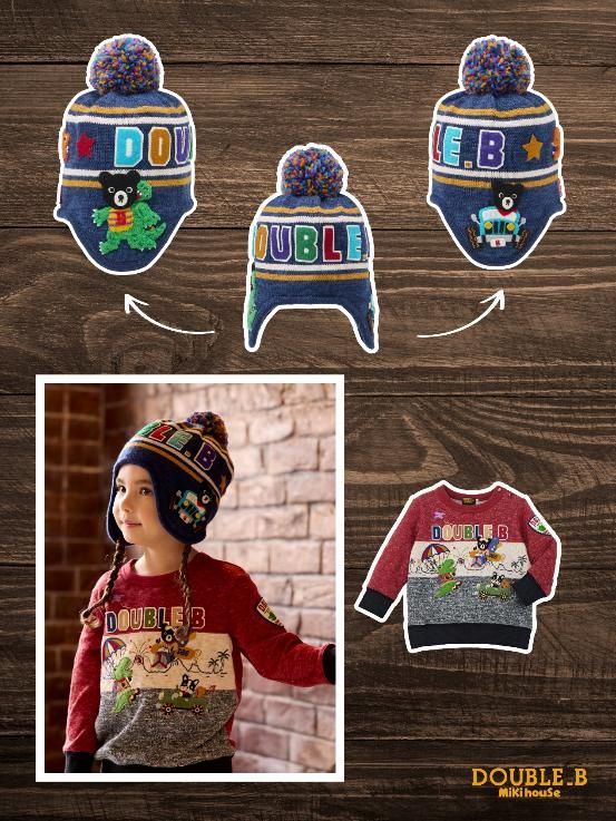 DOUBLE_B 恐龙系列用设计细节呵护孩子的探索之旅。不仅外套与长裤大件精心选材,细心裁剪,就连小小的针织帽也是处处大胆创意和精致呵护。经典小黑熊针织帽作为一款兼具设计感与实用性的冬季饰品,让孩子的造型更趣味,秋冬更温暖!